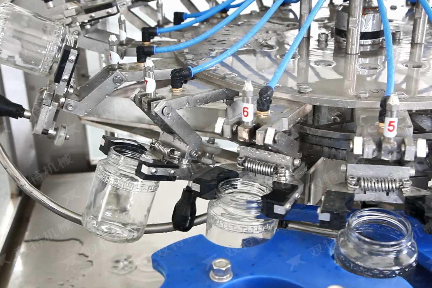 洗瓶機(jī)的過程是空瓶進(jìn)入輸瓶螺桿,由星輪傳動到夾瓶工位,洗瓶的整個過程瓶底均懸空,其優(yōu)點是著力點在瓶頭和頸部,是瓶子厚硬的部分,在清洗過程中不會損傷或壓扁,洗瓶機(jī)可調(diào)整多種瓶子,且調(diào)整簡便。