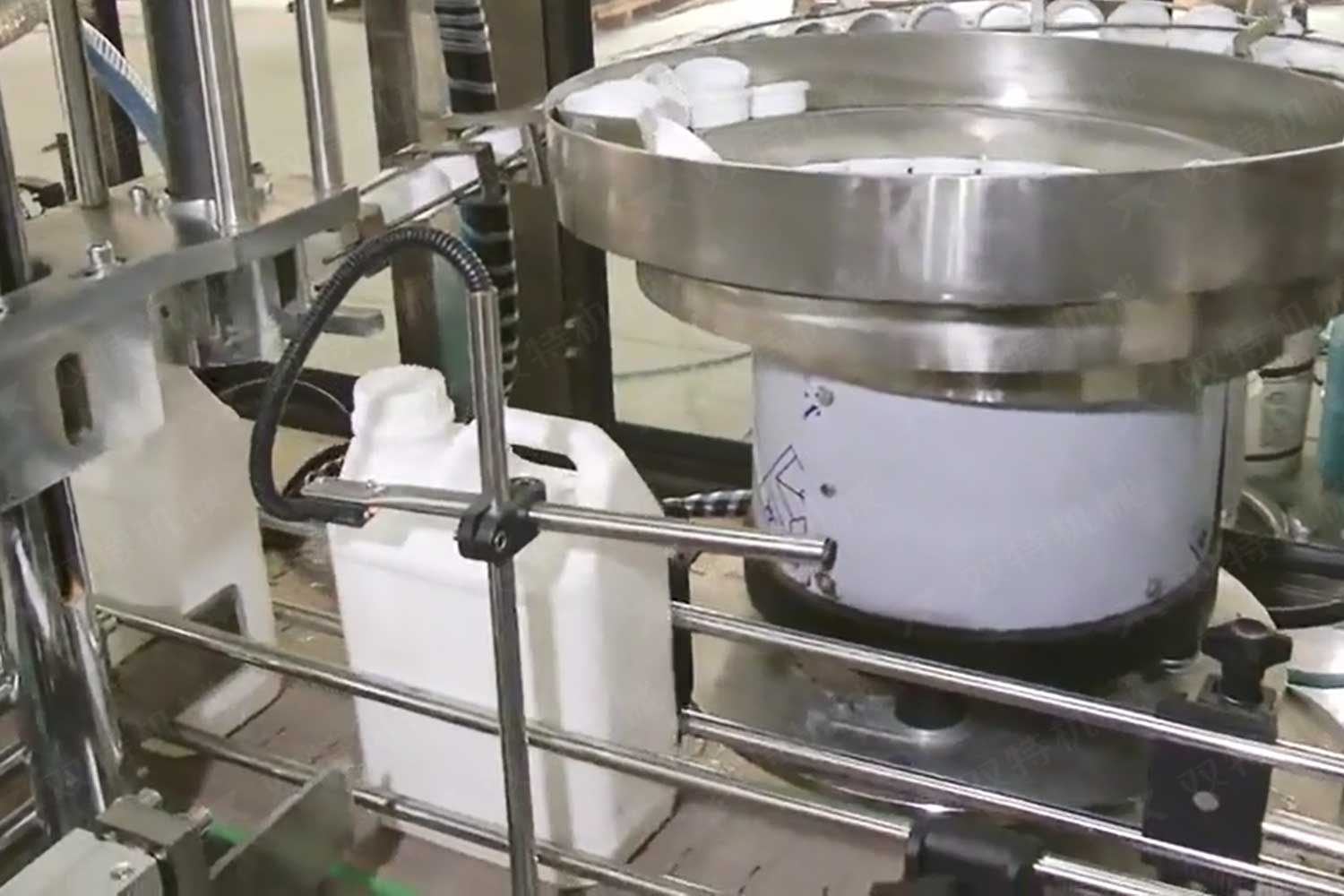 旋蓋機主要用于玻璃廣口瓶的三、四、六鐵蓋真空旋蓋,用兩根不同速度的皮帶壓瓶蓋,因兩根皮帶的速度不同,對蓋進(jìn)行搓蓋收緊達(dá)到旋蓋目的。在自動上蓋之前對瓶口吹蒸汽加熱,吹掉冷空氣,換上高溫蒸汽,立即旋蓋,根據(jù)熱脹冷縮原理,蒸汽冷下來就自然形成了瓶內(nèi)真空,達(dá)到了真空旋蓋的目的。自動旋蓋機可以和濃醬灌裝機、蜂蜜灌裝機、辣椒醬灌裝機組合在一起,形成一套全自動灌裝設(shè)備,是現(xiàn)代調(diào)味品企業(yè)的得力幫手。